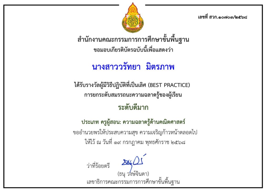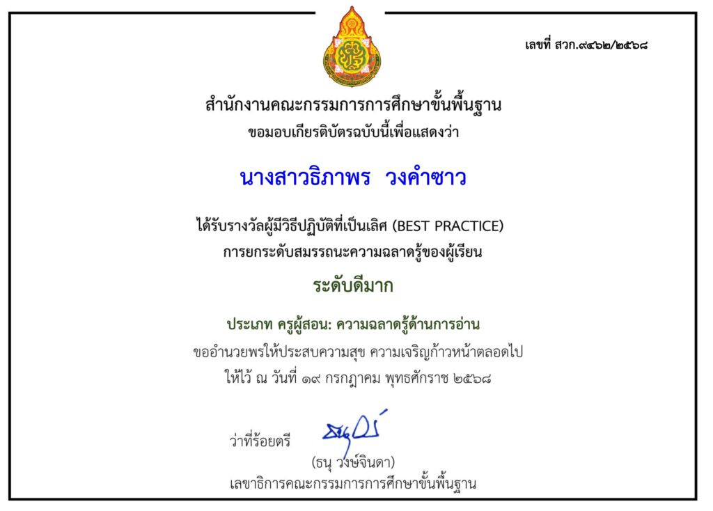 เมื่อวันที่ 25 กันยายน 2568 สำนักงานคณะกรรมการการศึกษาขั้นพื้นฐานได้ดำเนินการประกาศผล ผลการคัดเลือกการนำเสนอวิธีปฏิบัติที่เป็นเลิศ (Best Practice) การยกระดับสมรรถนะความฉลาดรู้ของผู้เรียน ตามหนังสือ ที่ ศธ04010/ว453311 ลงวันที่ 25 กันยายน 2568 ผู้บริหารและข้าราชการครู โรงเรียนบ้านโนนสวรรค์ได้รับรางวัลดังนี้